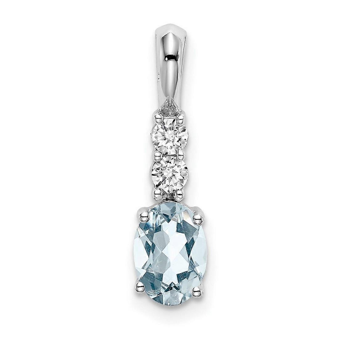 5mm 14k White Gold Oval Aquamarine and Diamond Pendant Necklace-Pendant for Women
