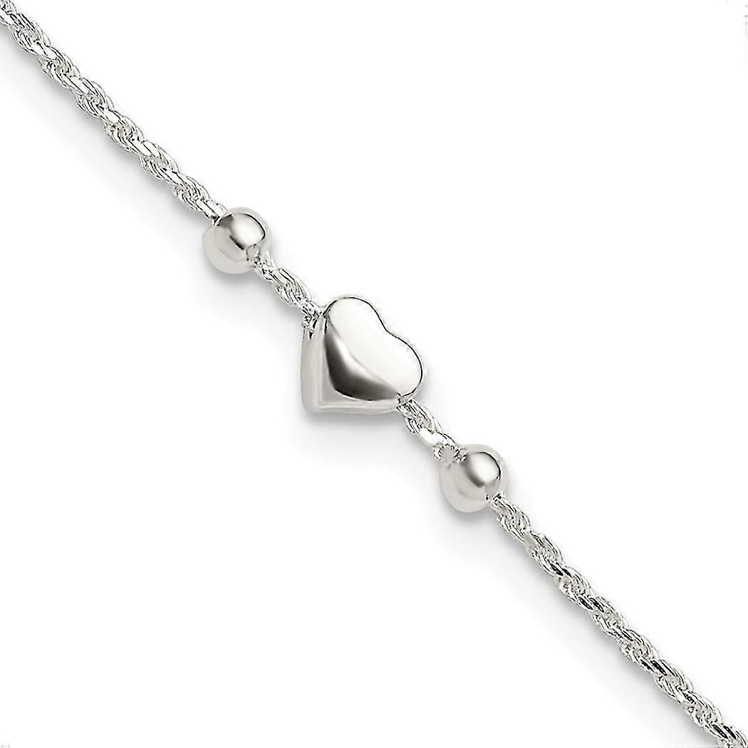 5mm 925 Sterling Silver Polished Love Heart Plus 1in Extension Anklet 9 Inch - Anklet for Women