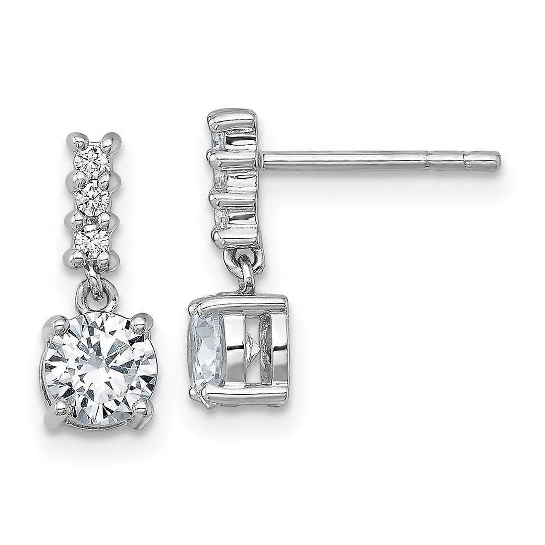 5mm 925 Sterling Silver Rhodium Plated Polished Cubic Zirconia Post Long Drop Dangle Earrings 13.6x5mm Wide-Dangle Earri