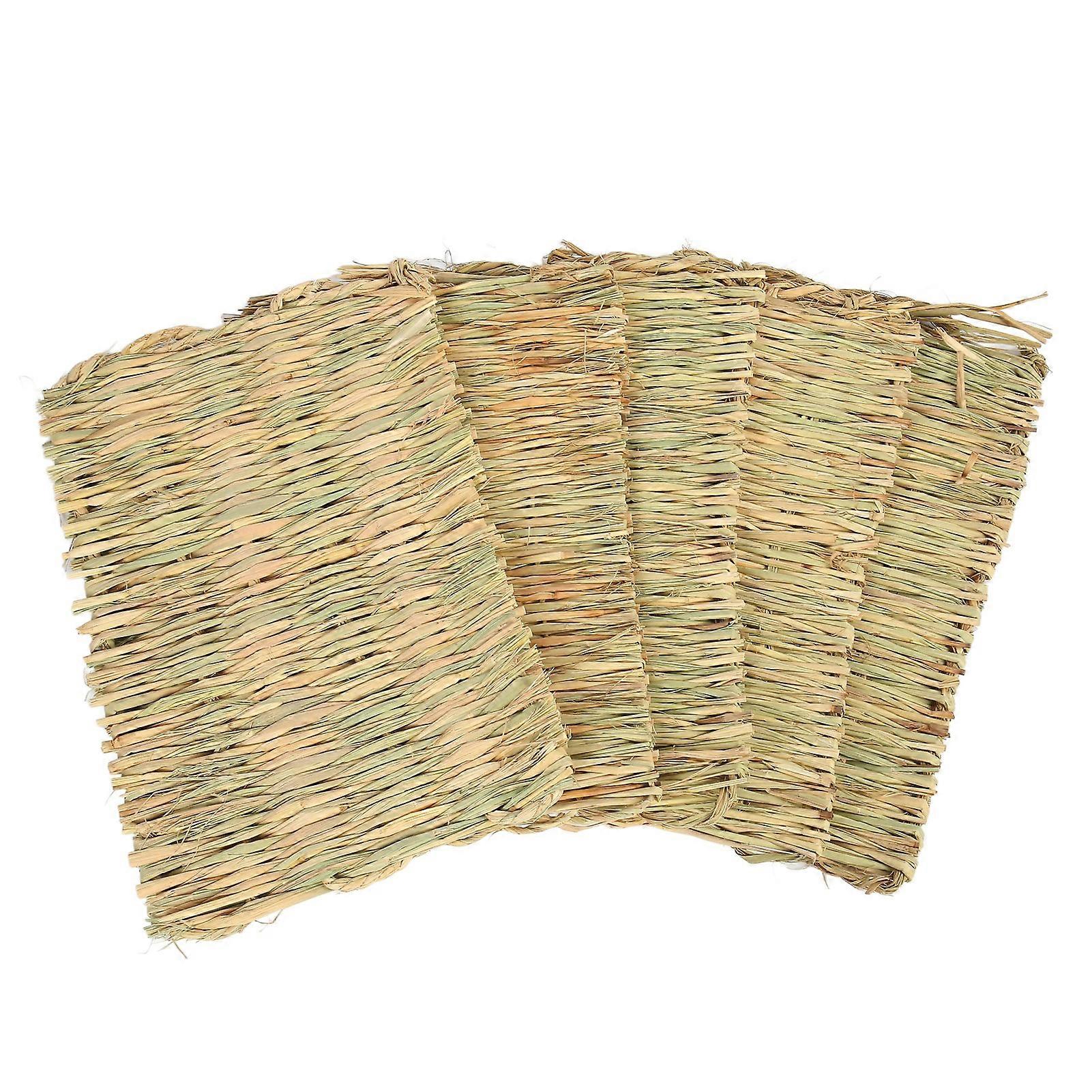 5PCS Rabbit Grass Mat 4 Season Universal Warm Grass Woven Bed Mat Bunny Bedding Nest for Guinea Pig Parrot Hamster Rat