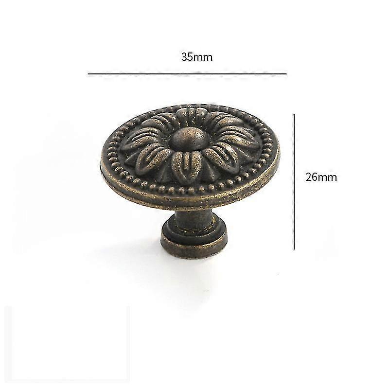 Product Dimensions - Width: 1.2"/25mm; Height: 1"/26mm Easy to Install - connect them in seconds with a simple hand or electric screwdriver. Pre-drilled to help maintain surface integrity. High Quality - Cabinet handles are made of high quality aluminum alloy. Green bronze finished color. strong and sturdy Contemporary Style - The rugged design and elegant bronze petal finish make these kitchen cabinet knobs a lasting, beautiful addition to any home. Applications - These round knobs are perfect for kitchens, drawers, bathrooms, garage or office cabinets and more