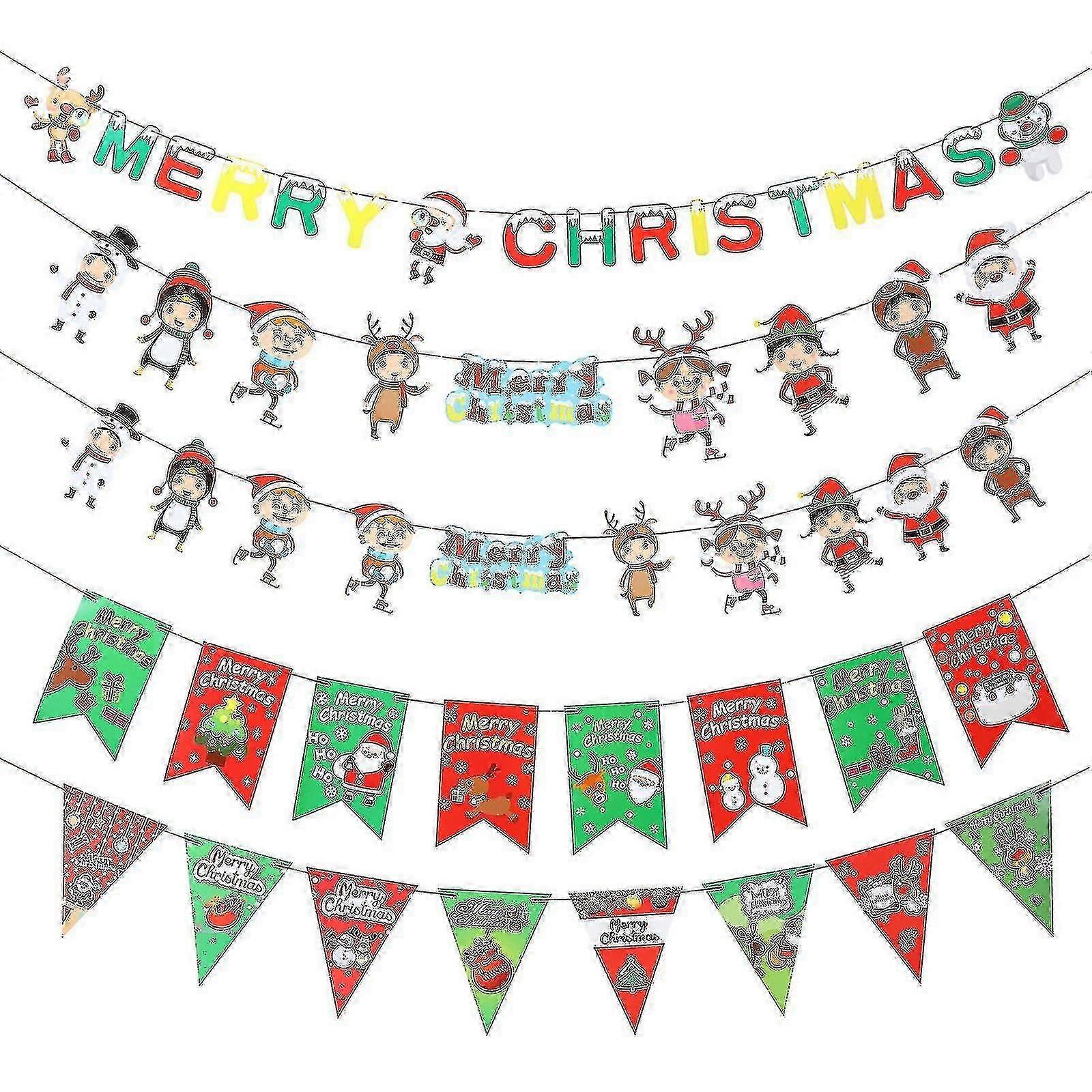 5pcs Christmas Theme Decor Cartoon Paper Banners Creative Hanging Ornaments