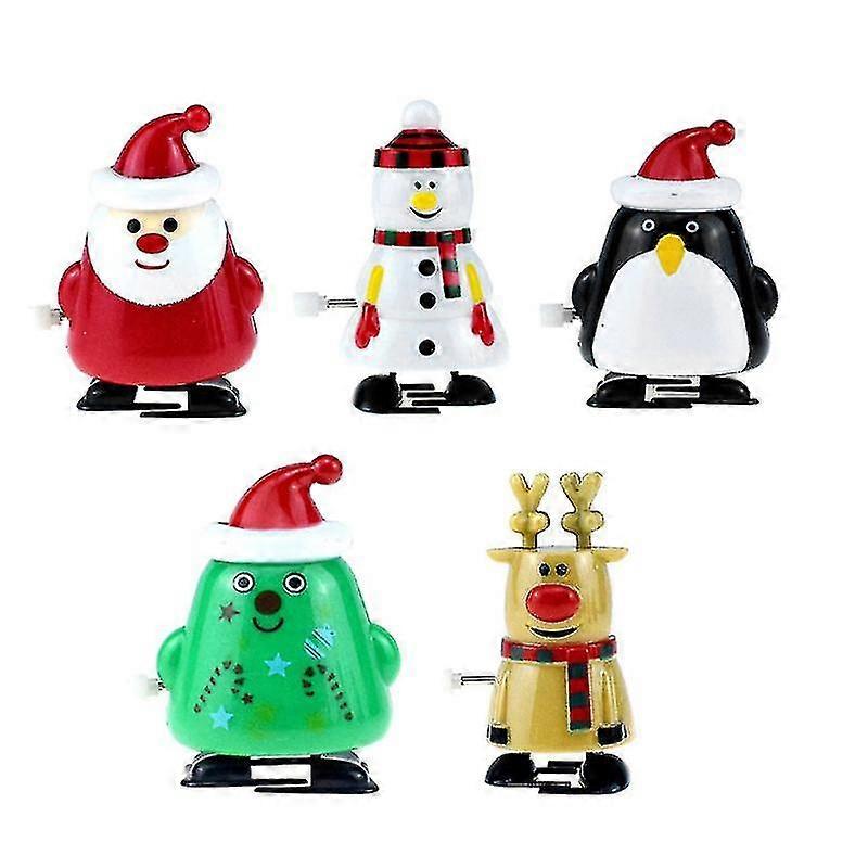 5pcs Christmas Clockwork Toy Christmas Gift Supplies Funny Wind Up Toy Kids Educational Toys (santa + Christmas Tree + Penguin + Christmas Snowman + E