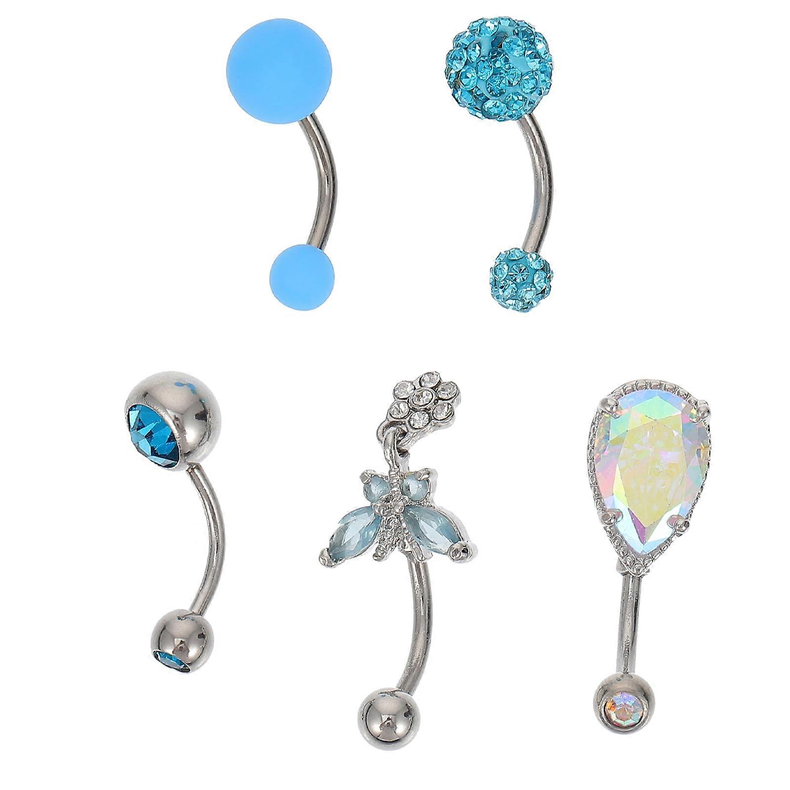 5pcs Stainless Steel Women Belly Button Rings Delicate Body Piercing Accessories