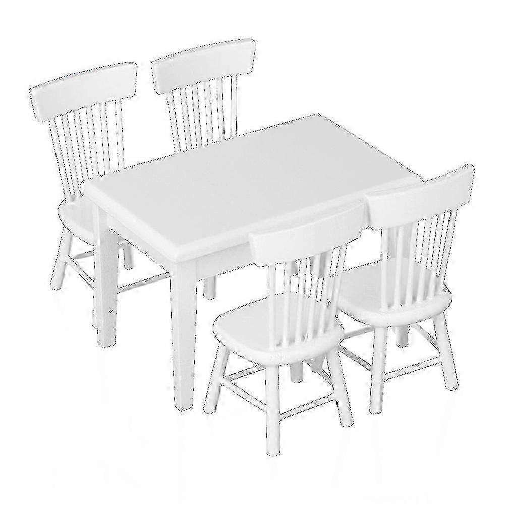 5Pcs Dining Table Chair Model 1:12 Dollhouse Miniature Wooden Furniture Toy Set