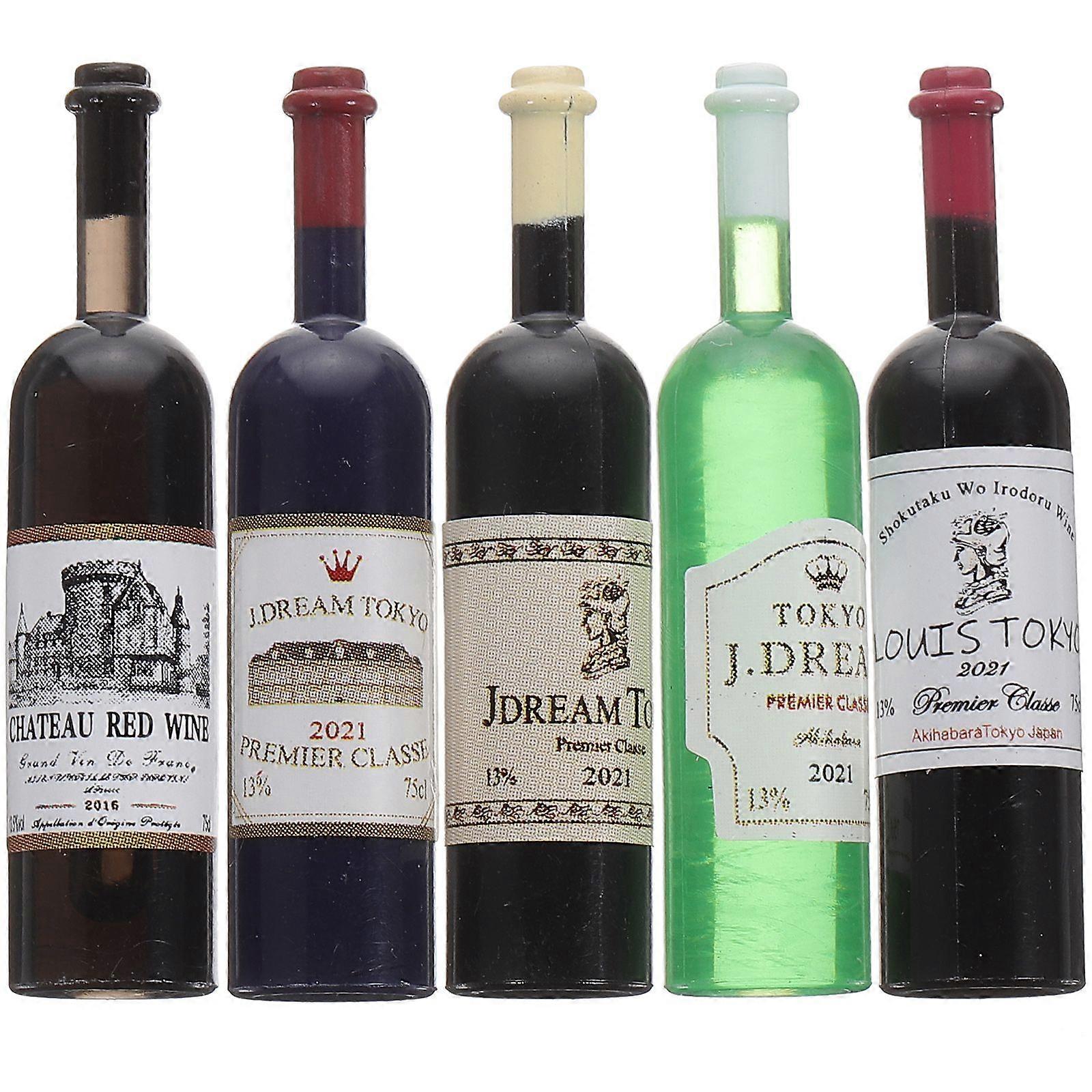 5pcs Doll House Mini Wine Bottles Mini Plastic Red Wine Bottles Toys Doll house Miniatures (1:12)
