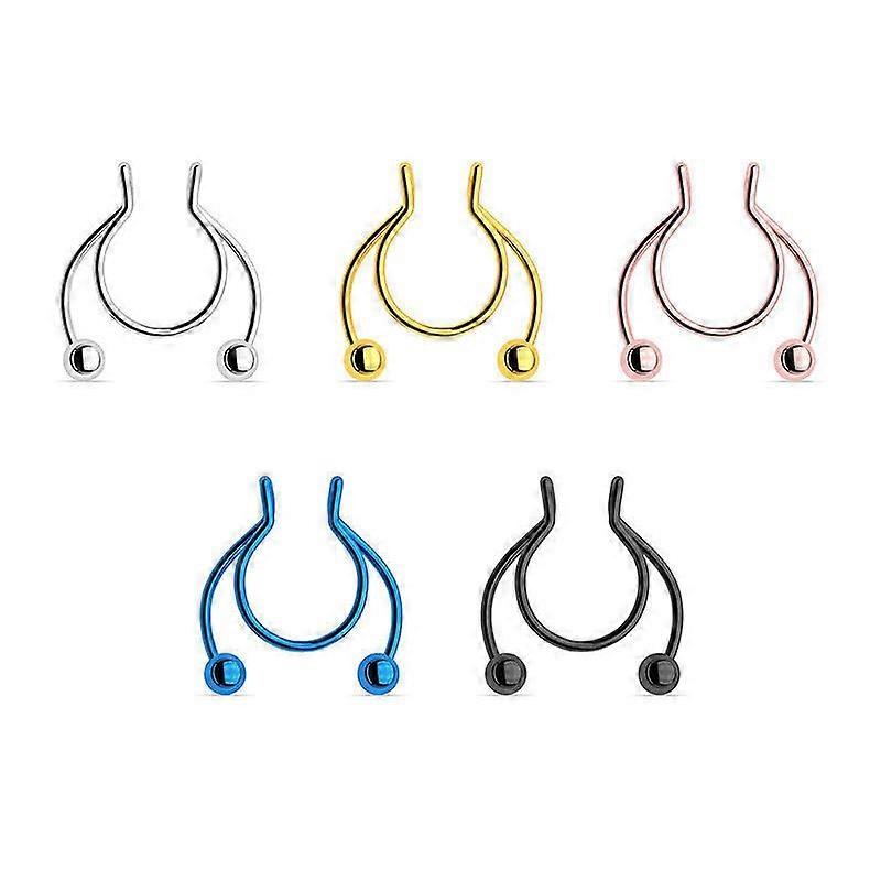 1. You will receive 5 pieces of No. 20 surgical steel hoop artificial nose rings, which can be worn on the ears, septum and cartilage, used as nose rings, lip rings, cartilage earrings, septum rings, septum jewelry, false earrings, spiral earrings, ears Screen earrings, etc. ^ 2. Size: false nasal septum nose ring: 20g (0.8mm), inner diameter: 5/16"(8mm)^ 3. Material: high-quality 316L surgical stainless steel, hypoallergenic and nickel-free, never rust and anti-tarnish, adjustable nose band with round head (non-blunt cut edge), high polished finish and electroplating, super smooth, comfortable to wear ^ 4. Packaging: 5 false septum nose rings (silver, gold, black, rose gold, blue)^ 5. Perfect match for various of occasions, birthday, Valentine's Day, an anniversary^