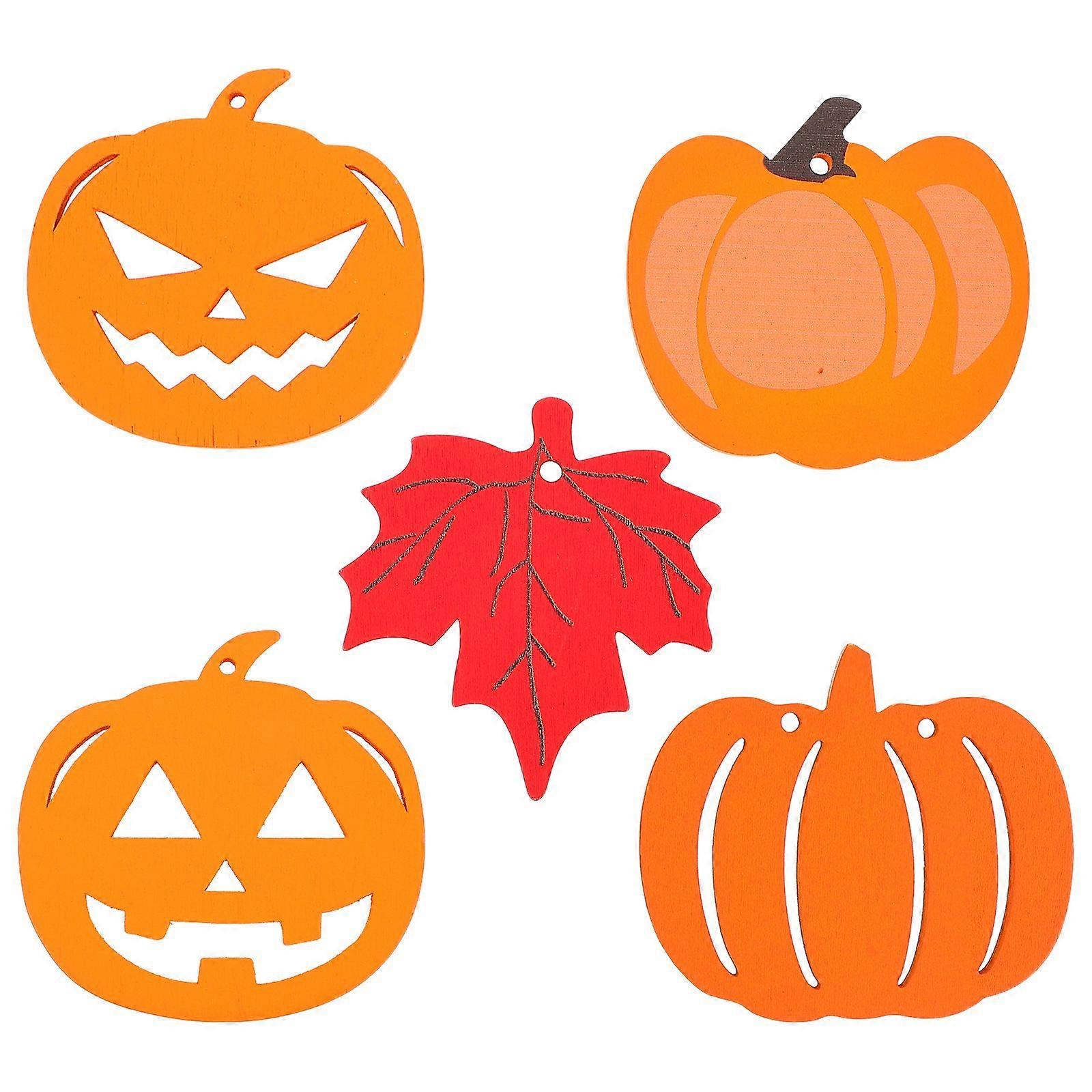 5pcs Halloween Wood Tags Halloween Pumpkin Hanging Pendants Wooden Cutouts Ornaments