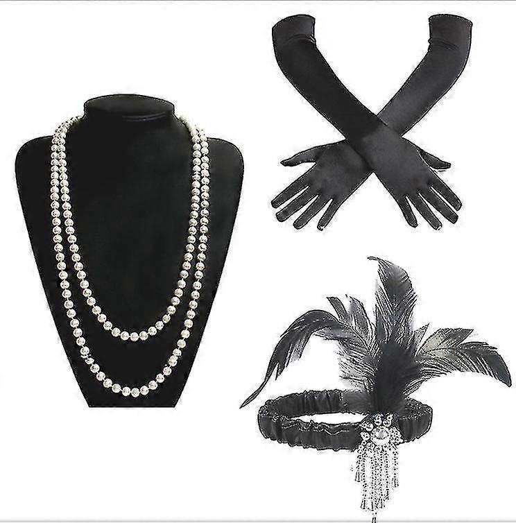 Features:This graceful vintage inspired pair of fashionably sheeny and soft satin like opera gloves,stretch fabric material feels comfortable for a night out dancing. Great Accessories Set for Prom, Event, Christmas and for 1920s party, great gatsby party, art deco party and flapper party. Stunning vintage styling right off the 1920s Gatsby runway. A set of most popular vintage items for a great flapper girls look. Go back to roaring 20s with the fabulous flapper costume. A set of great match to prom, flapper costume, roaring 20s party, the Great Gatsby themed party, art deco party and all other vintage style occasions. Condition: New With Tags. Style: Complete Outfit,Halloween. Item Type: Accessories. Theme: 1920s & 1930s. Size: One Size Adult. Main Colour: Black. Package Included:1*70 inches pearl beads necklace, 1*cigarette holder, 1*Plain long satin gloves, 1*Feather Boa, 1*Headband. Package: Of course with us you will have more combination options, as shown in the picture, A set of great match to prom, flapper costume, roaring 20s party, the Great Gatsby themed party, art deco party and all other vintage style occasions. (We provide excellent service.)