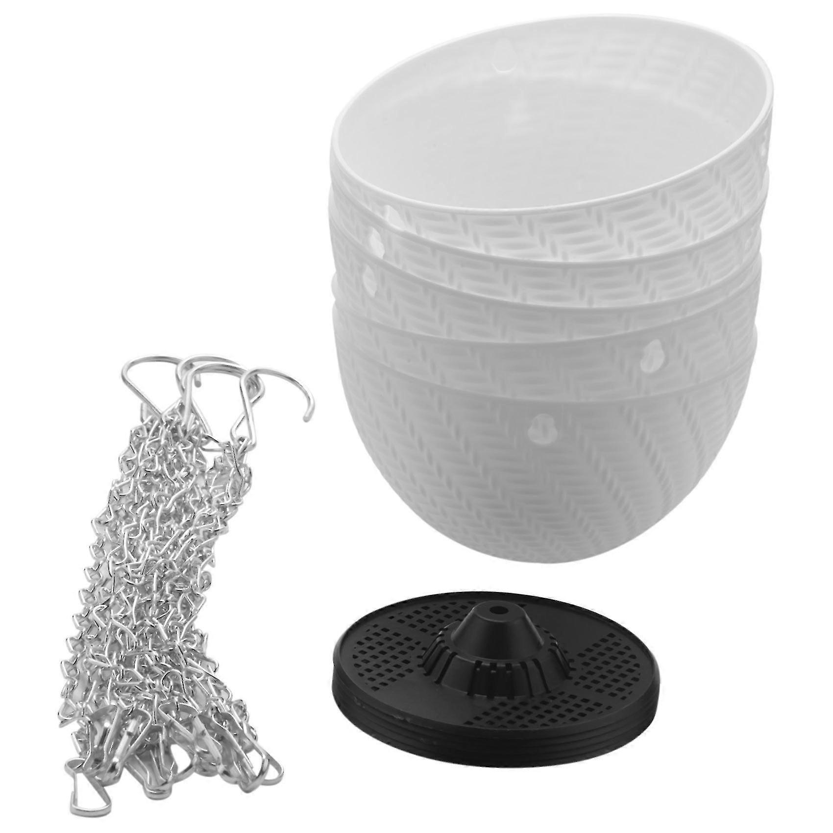 5pcs Round Plastic Hanging Basket Flower Pot 16x10cm Garden Plant Chain Planter Decoration Hanging Flower Pots(white)