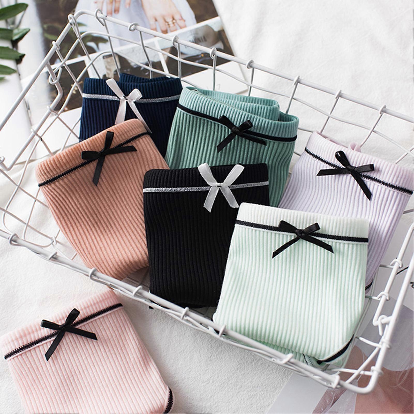 5pcs Ribbed Underwear Cotton Soft Mid Waist Moisture Wicking Stretch Ribbed Panties Mixed M