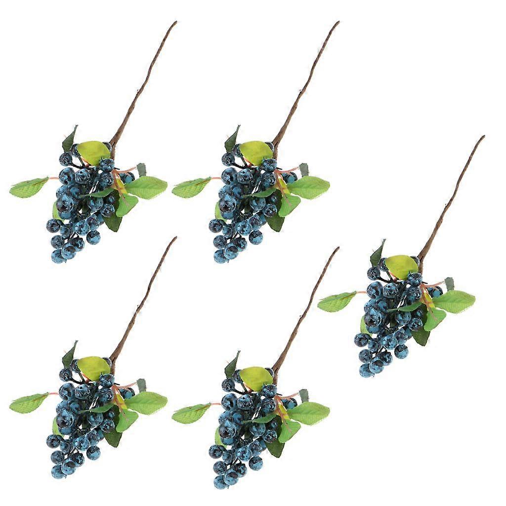 5pcs Artificial Fruits Berry Sprays for Holiday Decorating and Christmas Wedding Flower Arrangements Blue