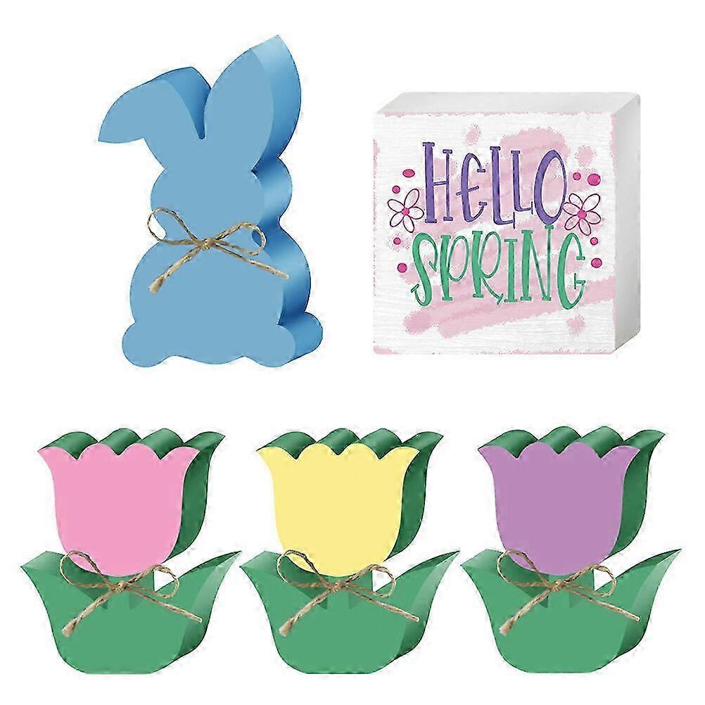 5PCS Adorable Wooden Tulip Decorations - 10X8.5cm - Assorted Colors