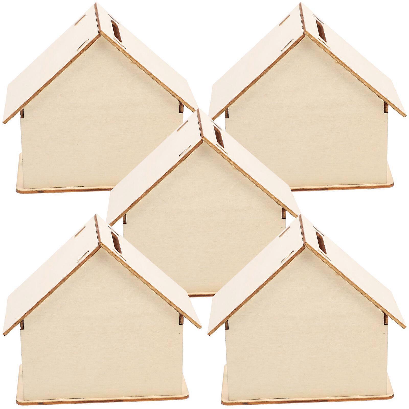 5pcs Unfinished Wooden Piggy Banks Kids DIY Coin Bank Change Container
