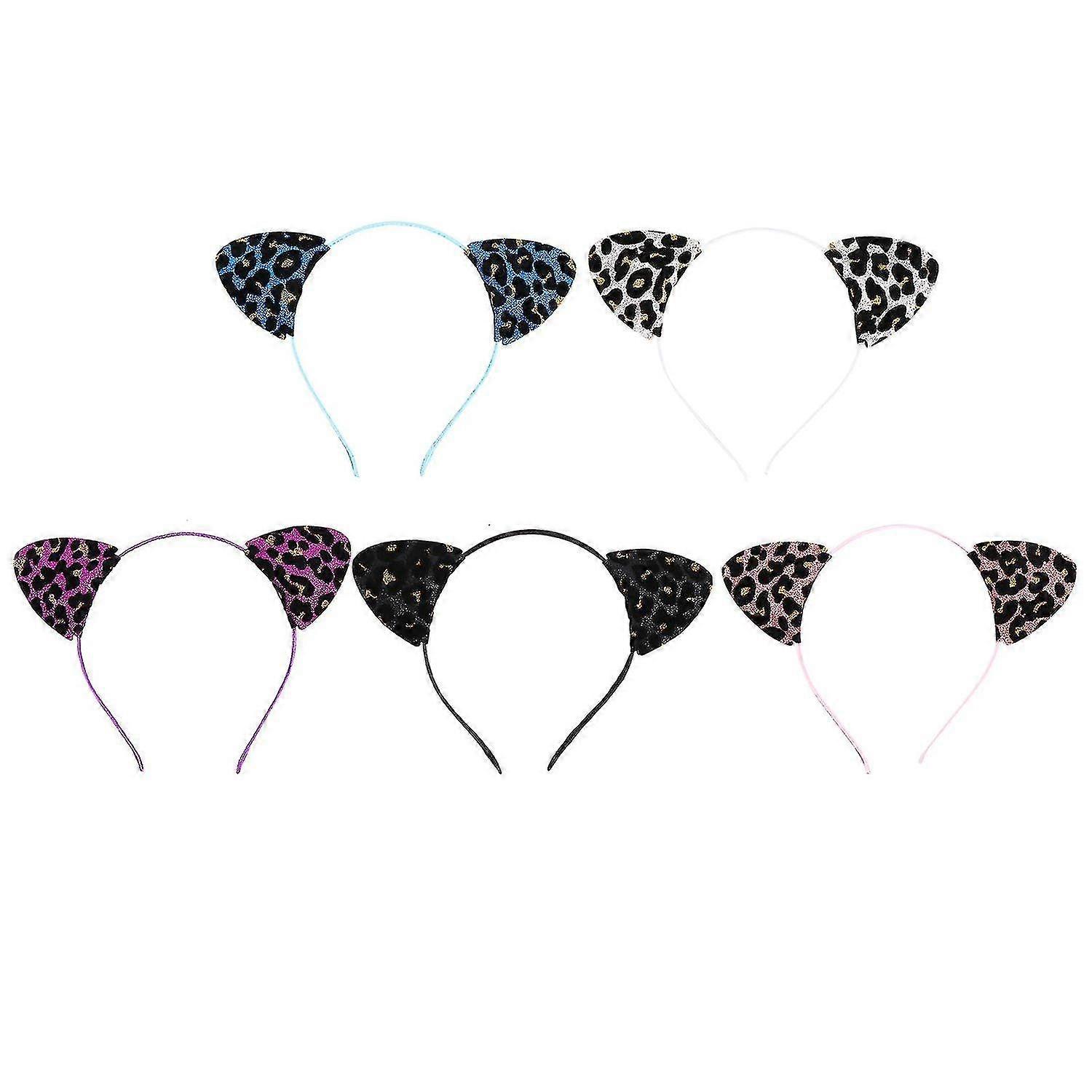 5pcs Cat Ears Hair Hoops Glitter Leopard Headband Hair Bands Party Accessory