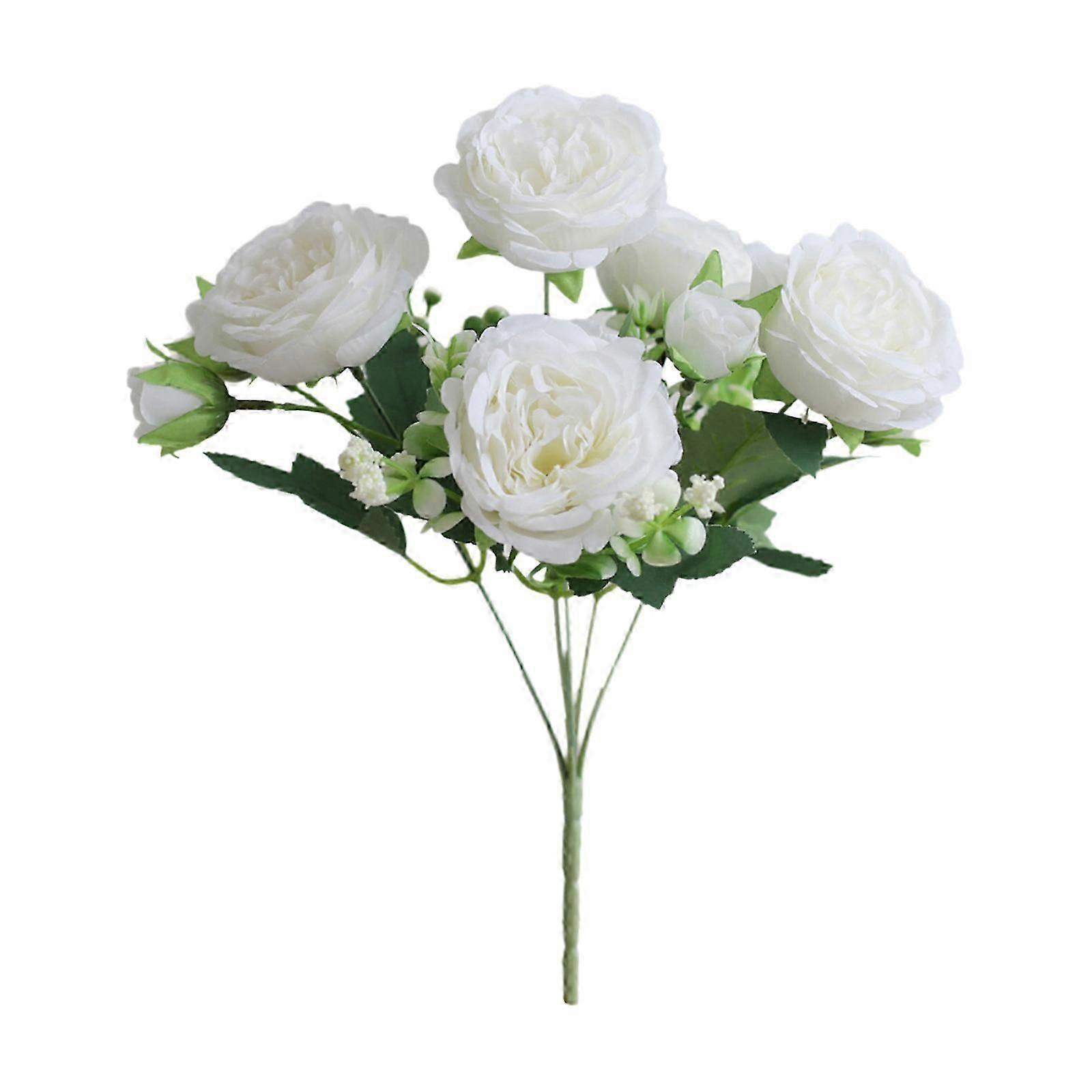 5pcs Artificial Flower Fake White Peony Silk Flowers Bouquet Plastic White Bulk Flowers for Home Wedding Bride Bouquet Decor