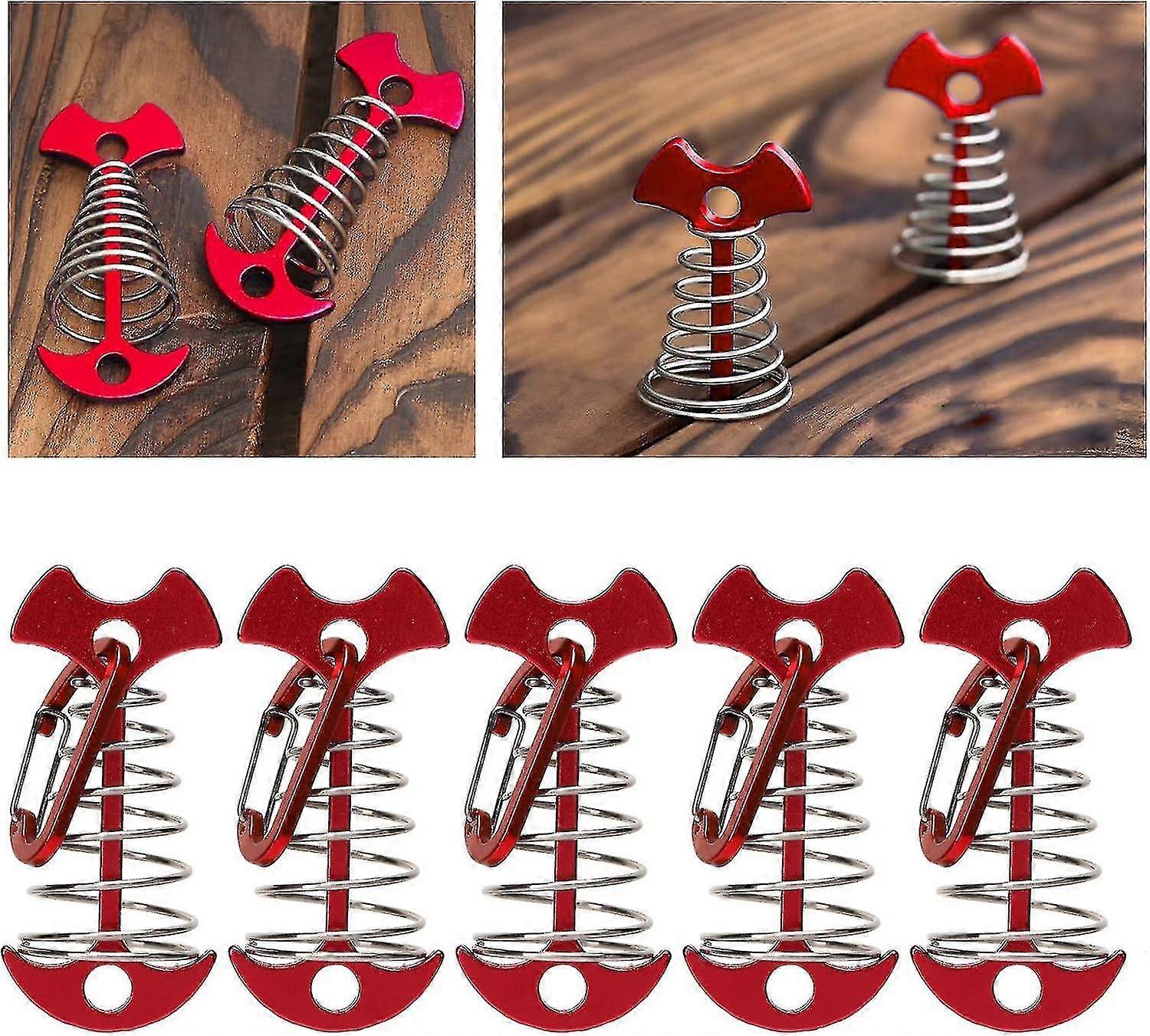 5pcs Windproof Tent Stakes, Aluminum Alloy Camping Pegs, Fishbone Tent Anchors with Spring Buckle, Portable Wind Rope Nails--5Pcs Red
