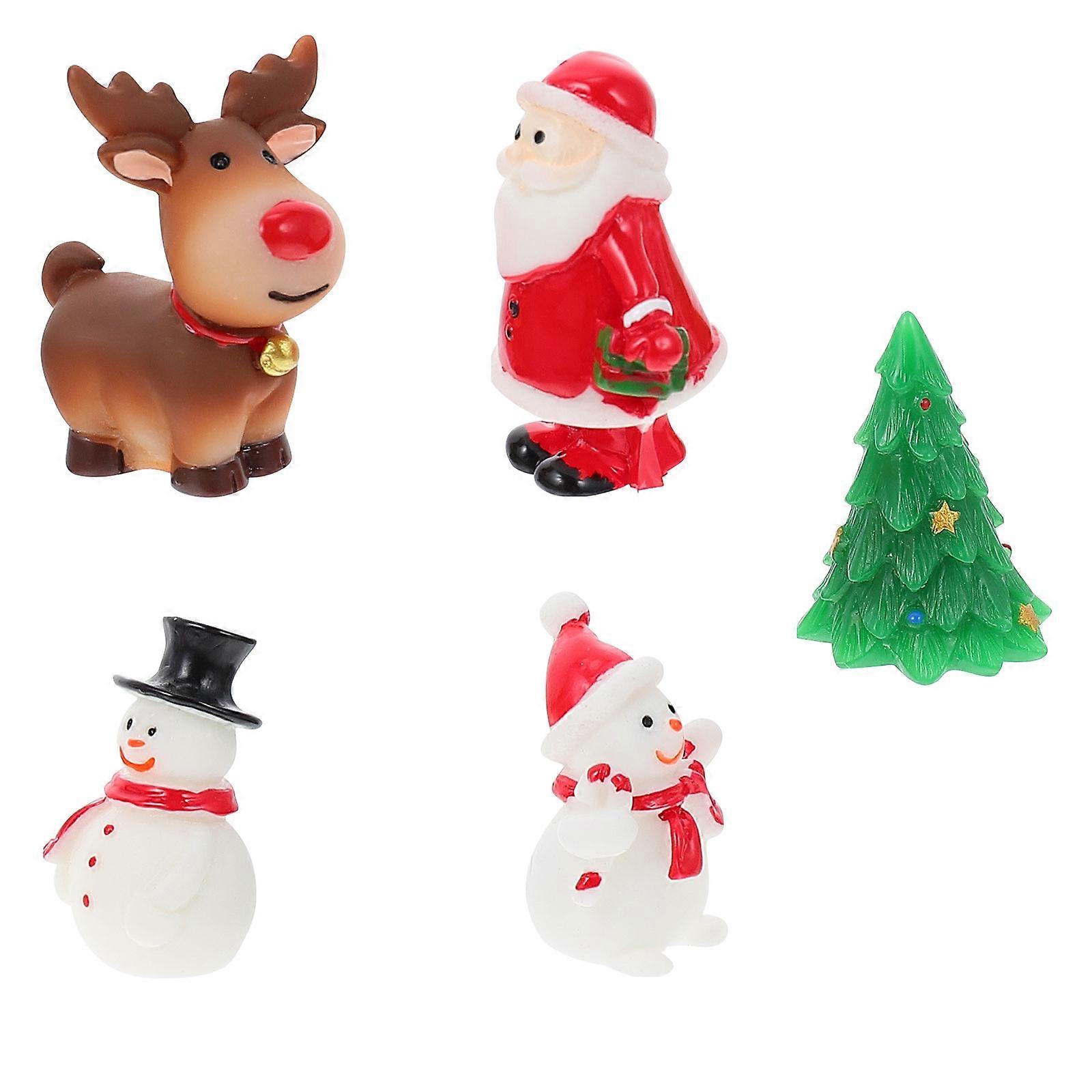5PCS Christmas Micro Landscape Ornaments – Festive Desktop Decor with Santa, Snowmen, Tree & Reindeer – Holiday Home & Office Decoration