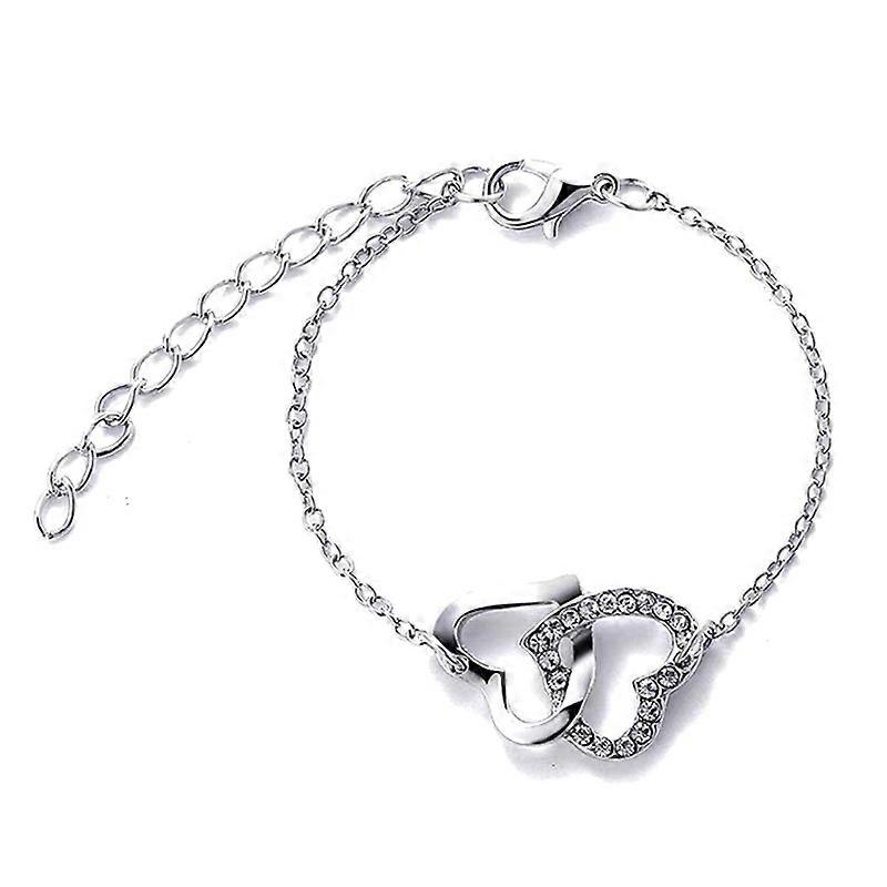 5PCS/Set Heart Shaped Jewelry Sets Of Ring Earrings Necklace For Women Elegance Rhinestone Double Heart Jewelry