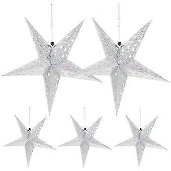 5pcs 45cm Shiny Ceiling Paper Star Party Home Hanging Lampshade Decor for Wedding Birthday (Silver)