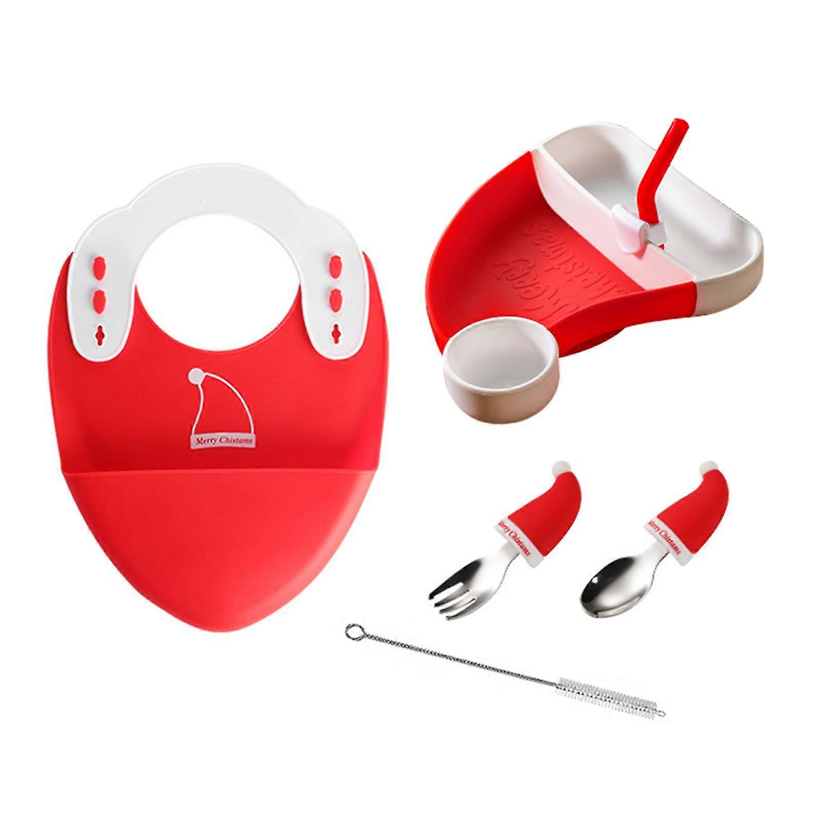 5PCS/6PCS Chirstmas Hat Toddler Plates Set Drop-resistance Toddlers Dinnerware for Boys Girls