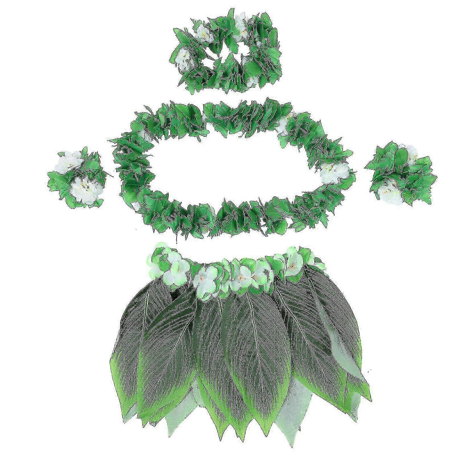 5pcs Hula Skirt Hawaiian Costume Set With Green Leaves Necklace Bracelets Headband Luau Party Favors Compatible Beach Luau Party Supplies(adults)-k