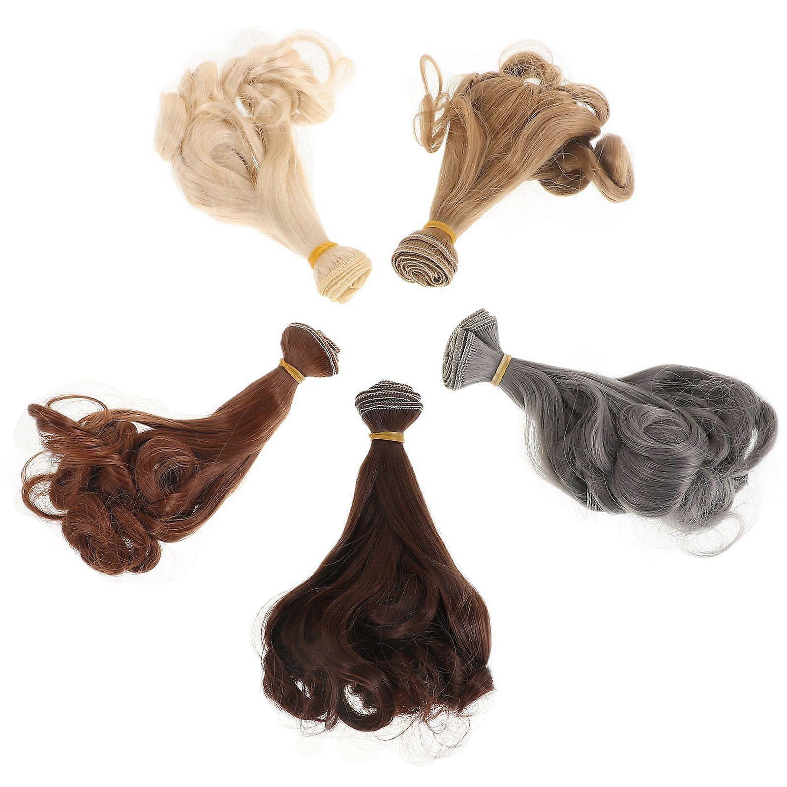 5pcs Doll Curly Wigs Long Synthetic Hair Wefts Bjd Wig Hair Row For Handcraft Diy Hair Weft For Doll Hair Crafts