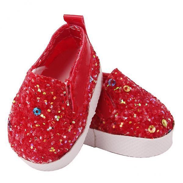 5x14.5inch Girl Doll Sequins Flat Shoes Dress up Clothing Accessory Red