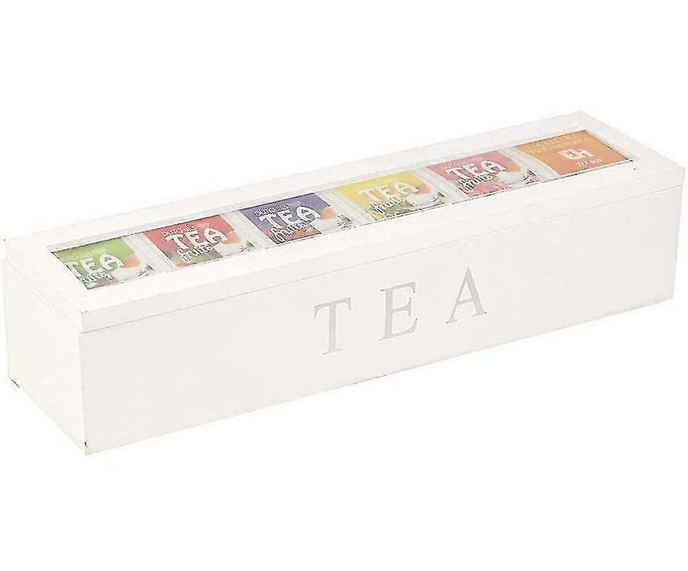 Tea Box Made Of Bamboo Tea Box With 6 Compartments Tea Bag Box Made Of Wood With Lid And Velvet View