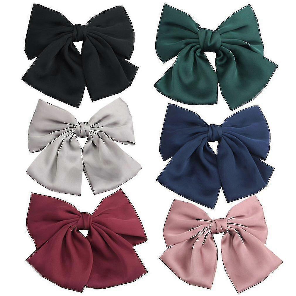 Set Of 6 Big Satin Solid 8 Inch Bow Hair Clips Women Barrettes(color:6 Pcs Satin Bow)