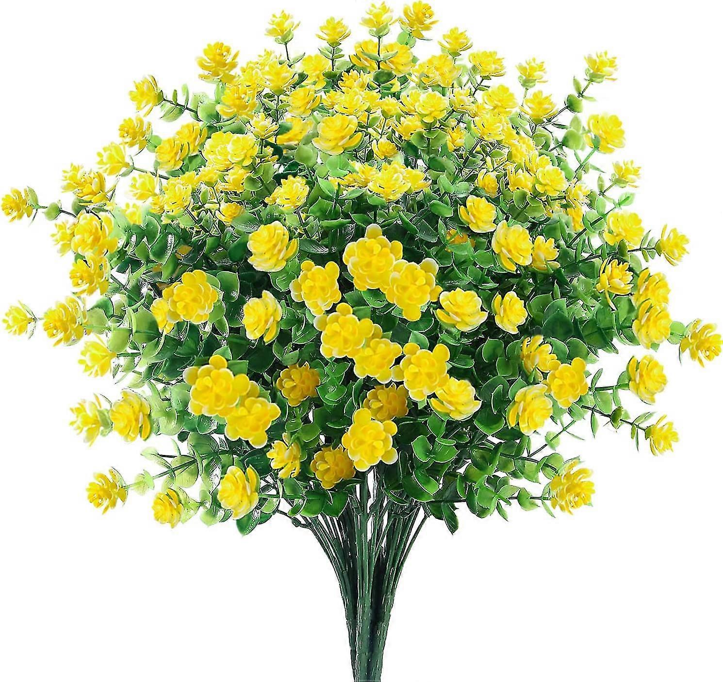 6 Bundles Artificial Flowers Outdoor Fake Flowers For Decoration Uv Resistant No Fade Faux Plastic Plants Garden Porch Window Box Décor (yellow