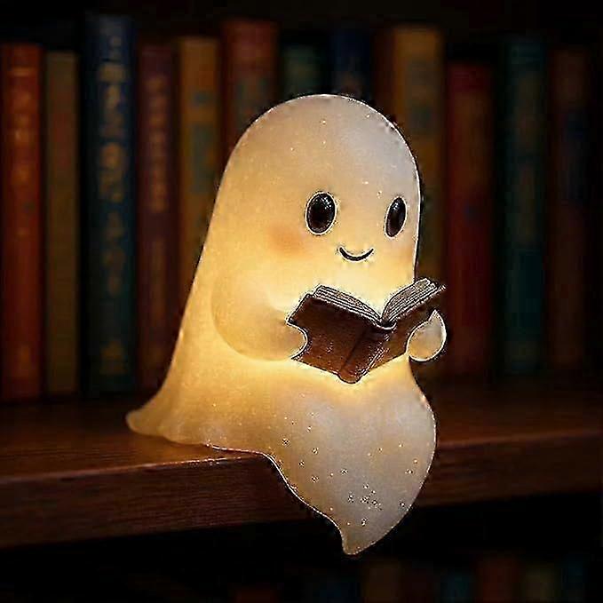 6inch Cute Ghost Reading Book Lamp, Halloween Ghost Night Light, Ghost Reading Night Lights, 3D LED Night Light Halloween, Light Up Halloween Decor, f