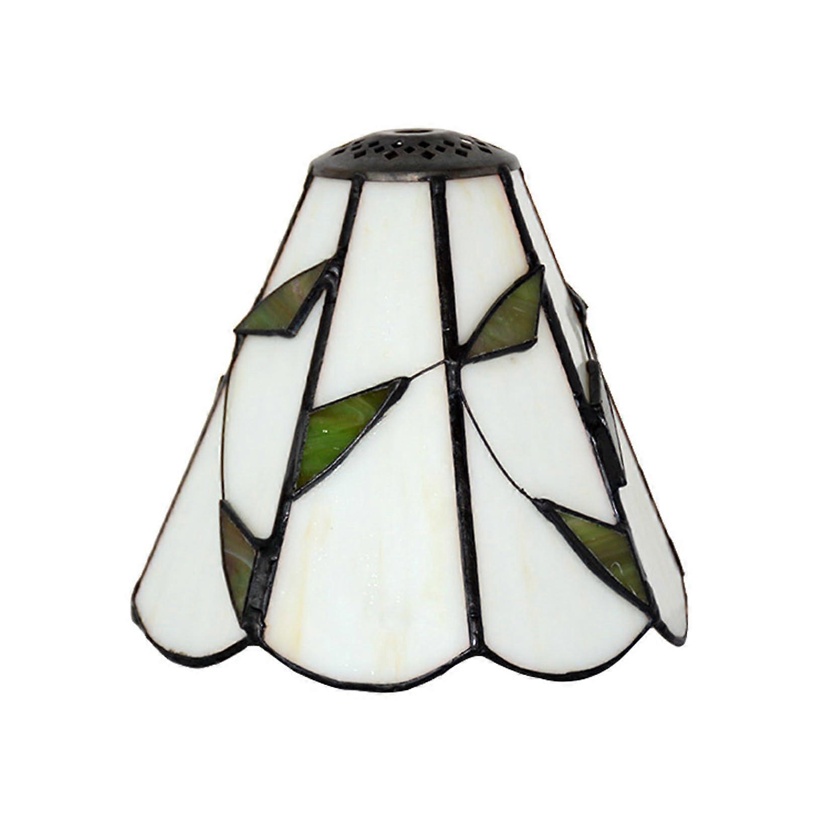 6 inch Tiffany Style Stained Glass Lampshade with Green Leaves, Small Hole Warm Beige