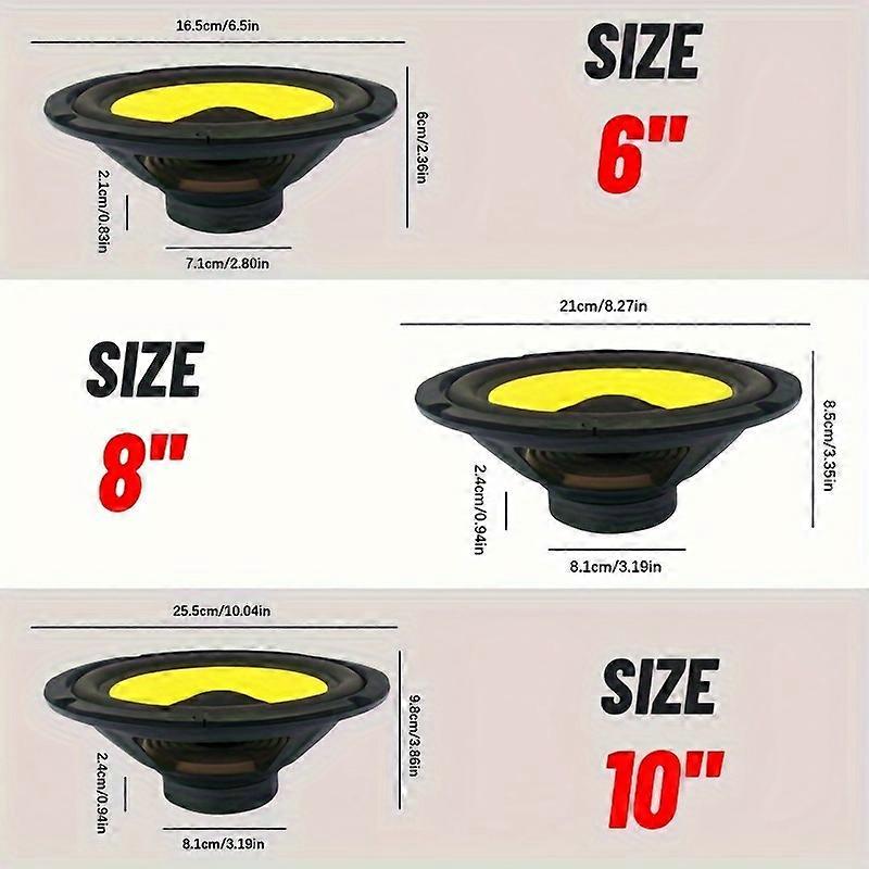 6-inch/8-inch/10-inch Car Subwoofer, 400W/600W/800W High Power, 4 Ohm, Car Modified Speaker Stereo, 80 Magnet, Bright Yellow, Good Sound Quality