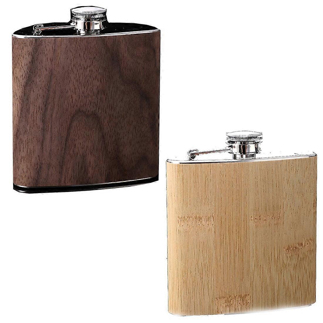 6oz Hip Flask Stainless Steel Portable Pocket Whiskey Pocket Flask Liquor Container Wood Grain Pattern Drinking Flask GiftD-