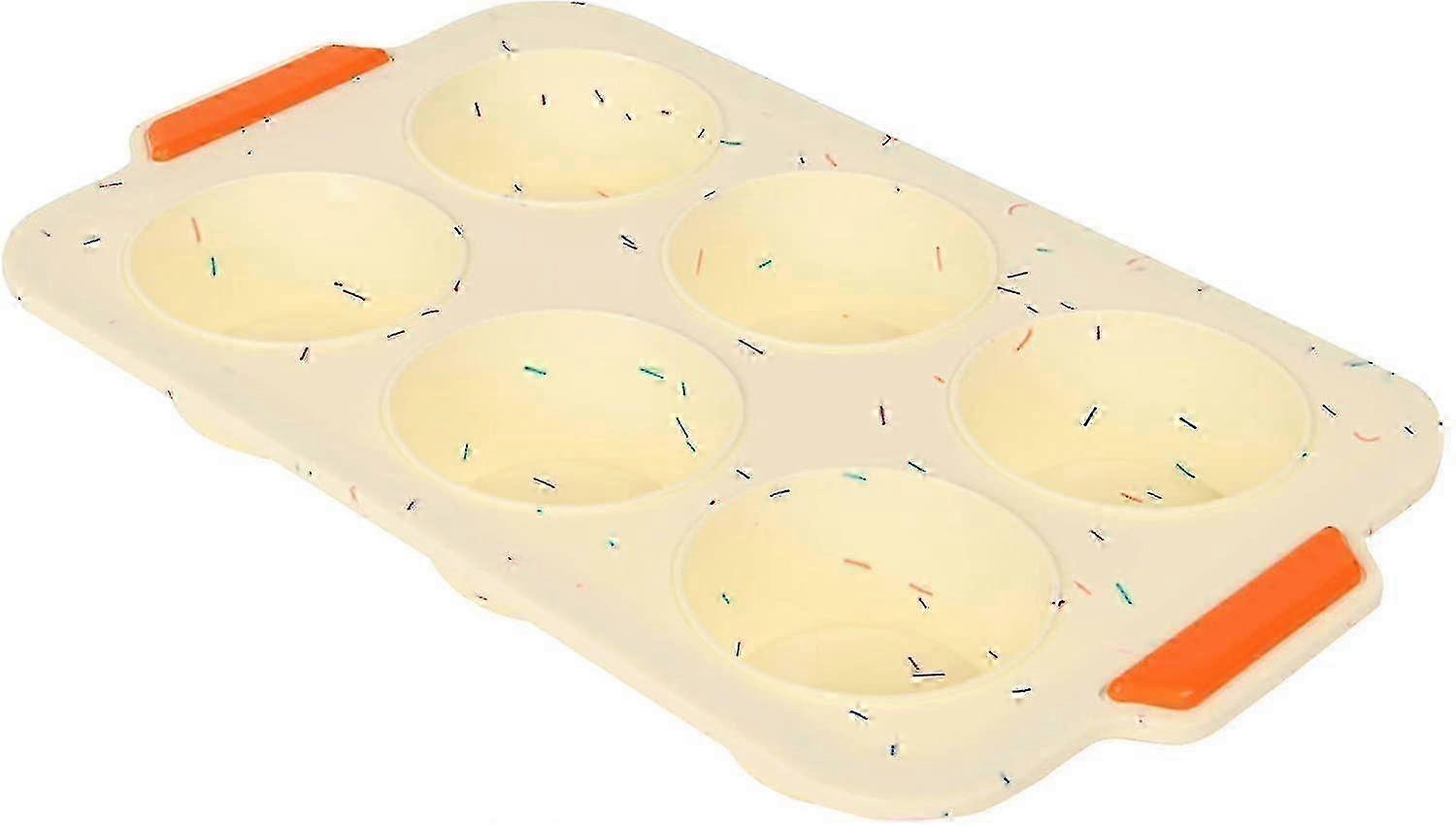 6-Cup Silicone Muffin Pan, Non-Stick Cupcake Tray, Large Baking Mold, 29x19x3.5cm Beige Bakeware