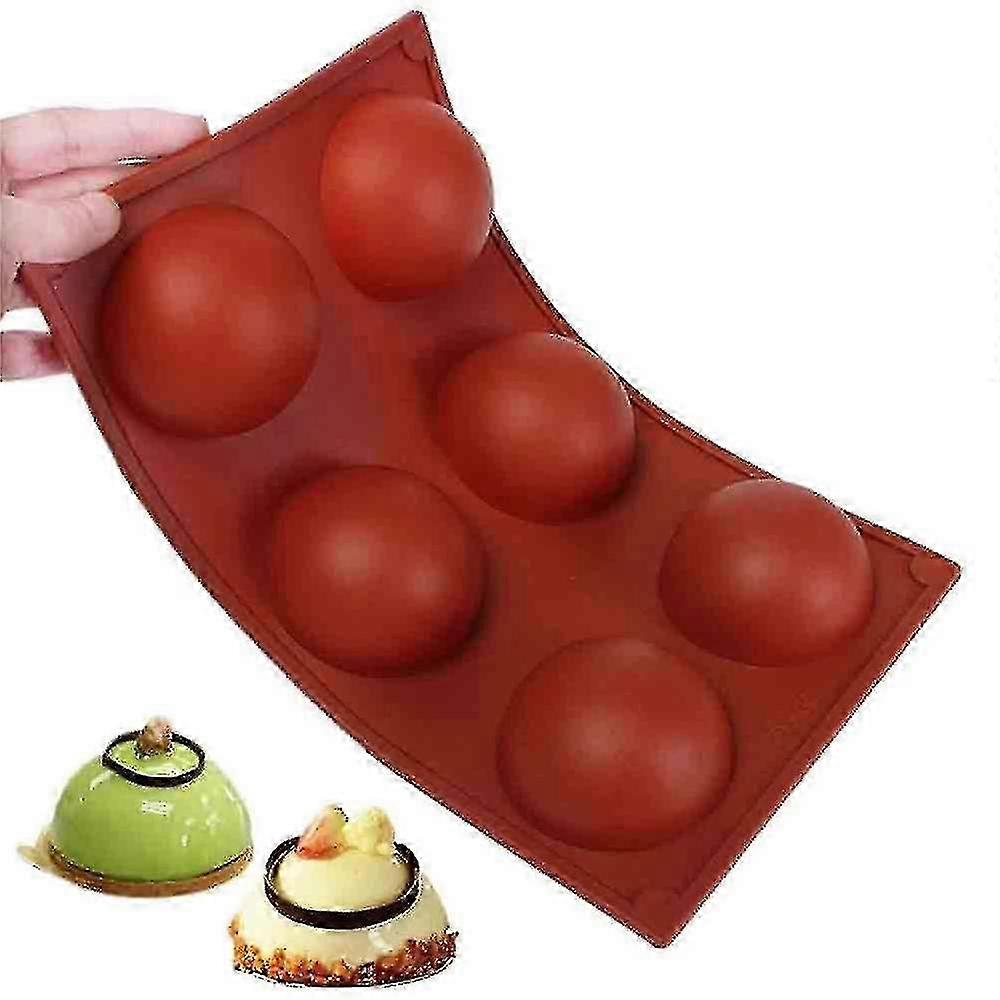 6-Cavity Silicone Mold, 2 Packs for Chocolate Cake Jelly Dome Mousse - Brick Red