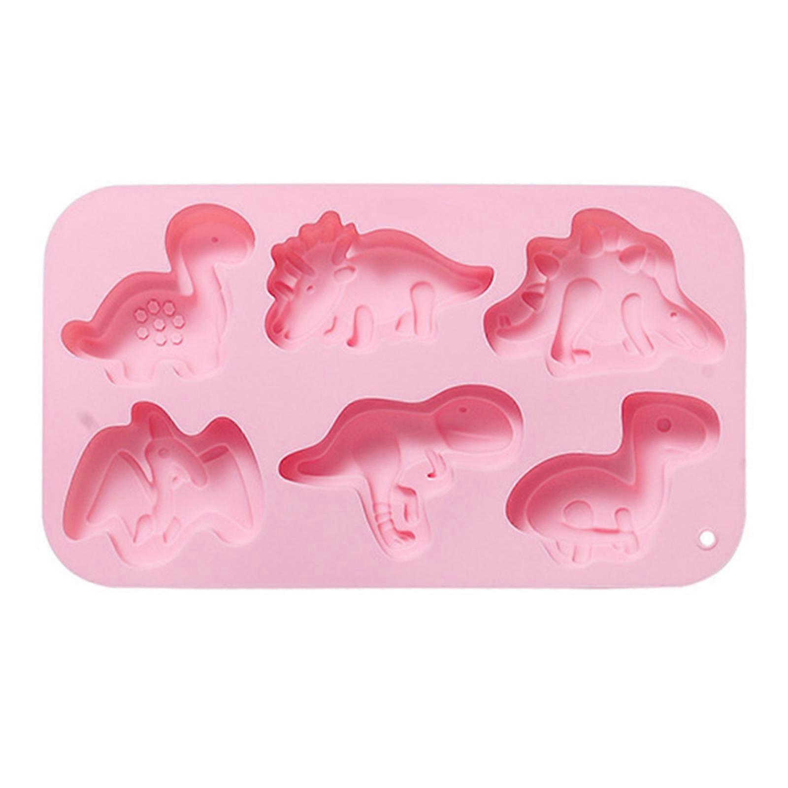 6 Cavity 3D Dinosaur Silicone Flexible Food Grade Mould Clay Resin Ceramics Candy Fondant Candy Chocolate Soap Mould Pink