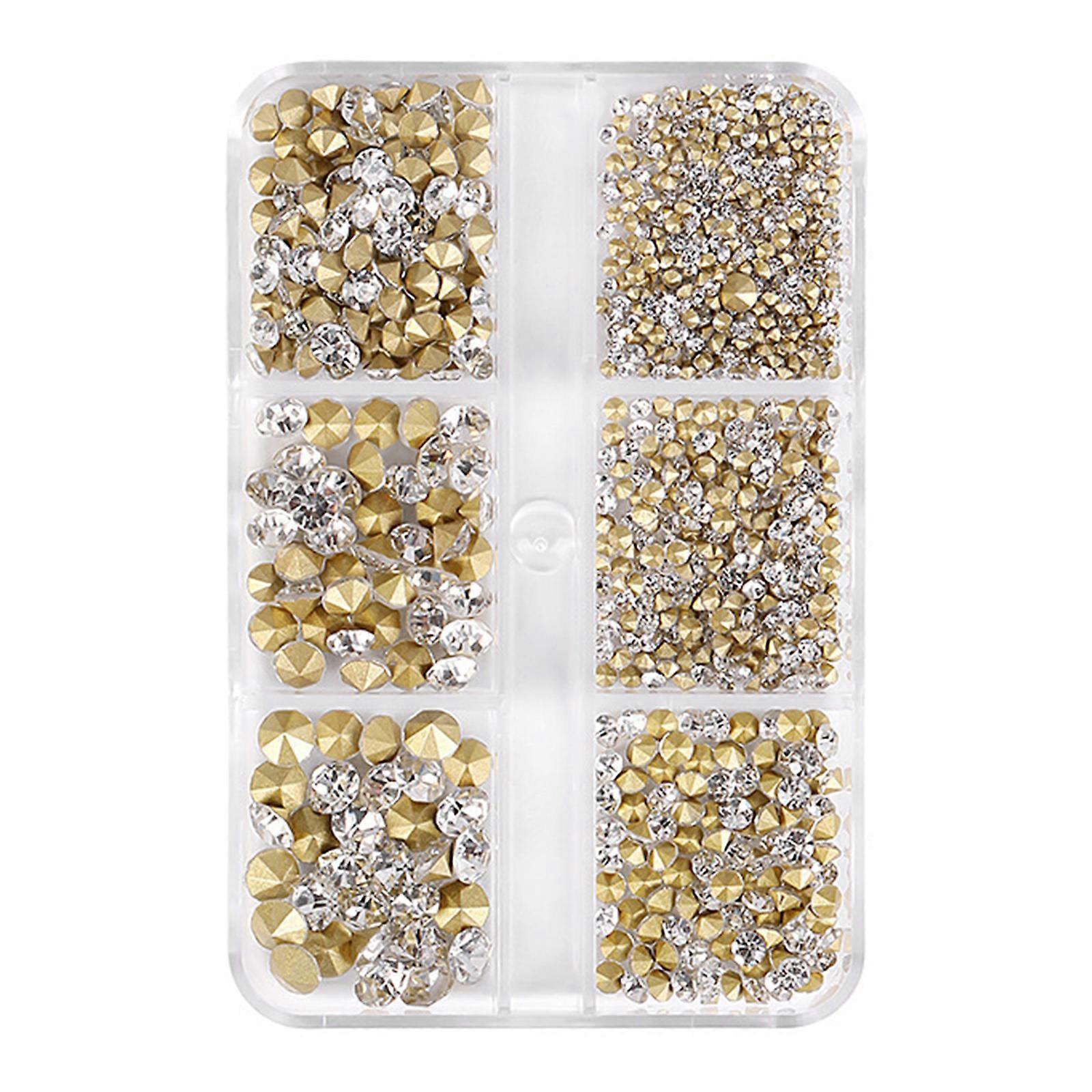 6-Grid Nail Art Rhinestones Pointed Bottom Nail Art Charm Manicure Ornament Jewelry Tip for-Home DIY Professional Use