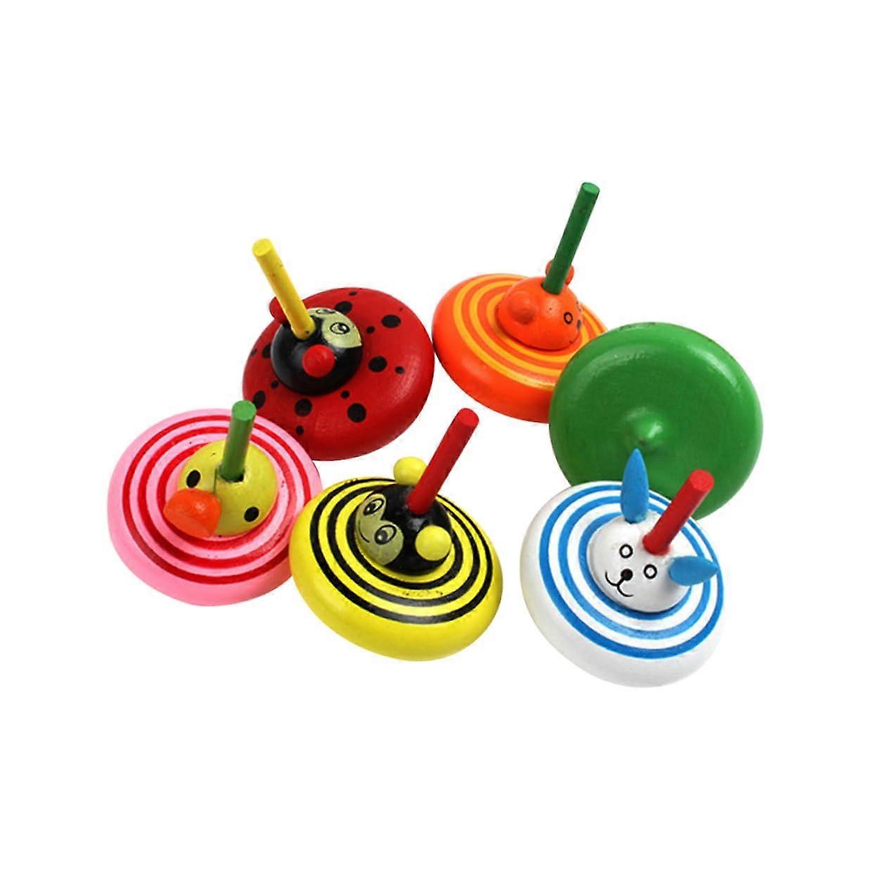 Pack of 6 Gyroscope Mini Animal Toy Desk Toys Children's Toy Wooden Plate Small Spinning Wooden Funny Plug Toy Wooden