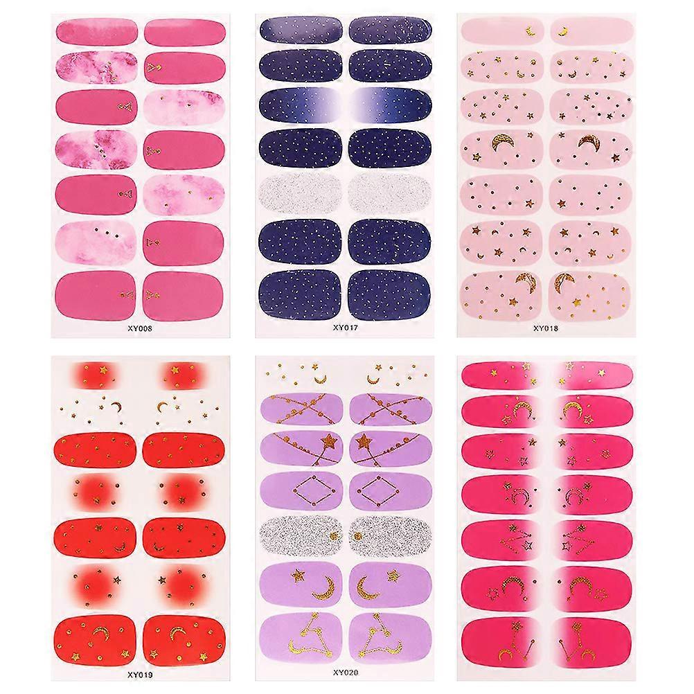6 Sheets Fashion Nail Patches Creative Manicure Stickers Women Nail Decals DIY Nail Art for Outdoor Party (Random Style)