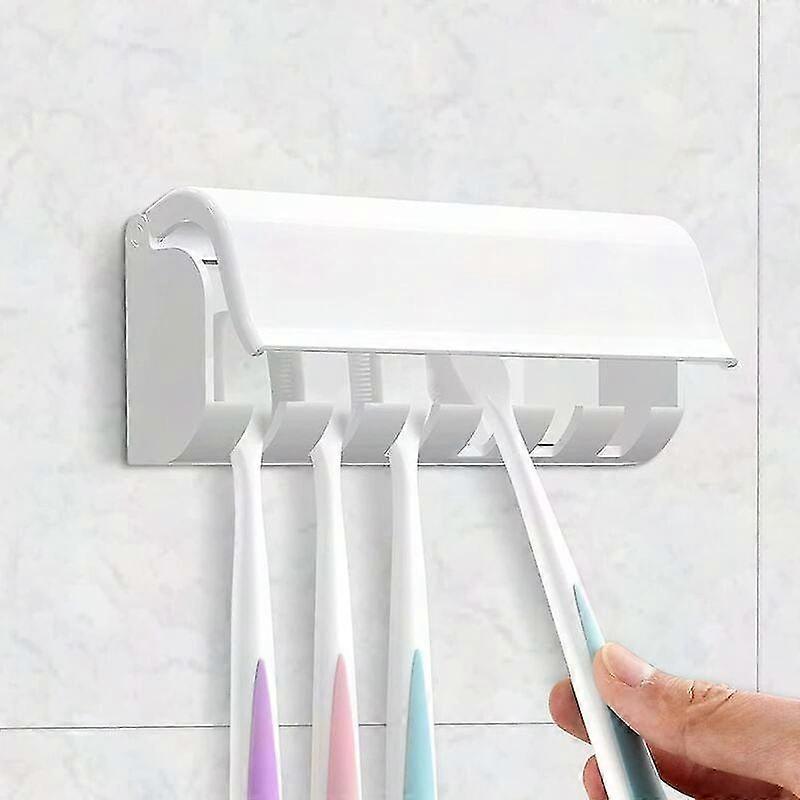 6 Slot Wall Mounted Toothbrush Holder - Self Adhesive RV Mirror Storage Rack with Lid