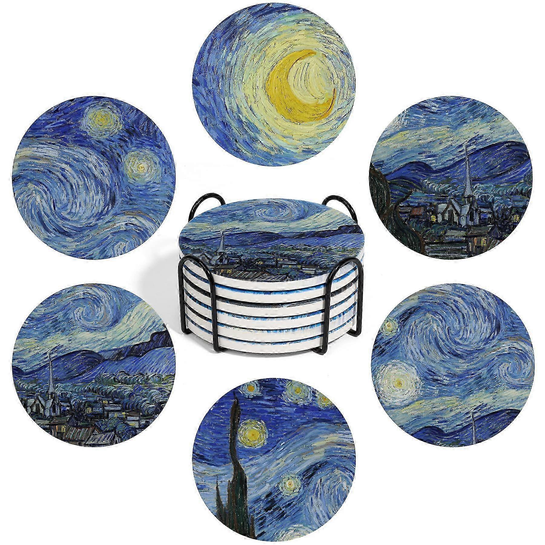 6 Set Van Gogh Paintings Art Ceramic Drink Coasters for Coffee Table Gifts Home Decor 4 Inches