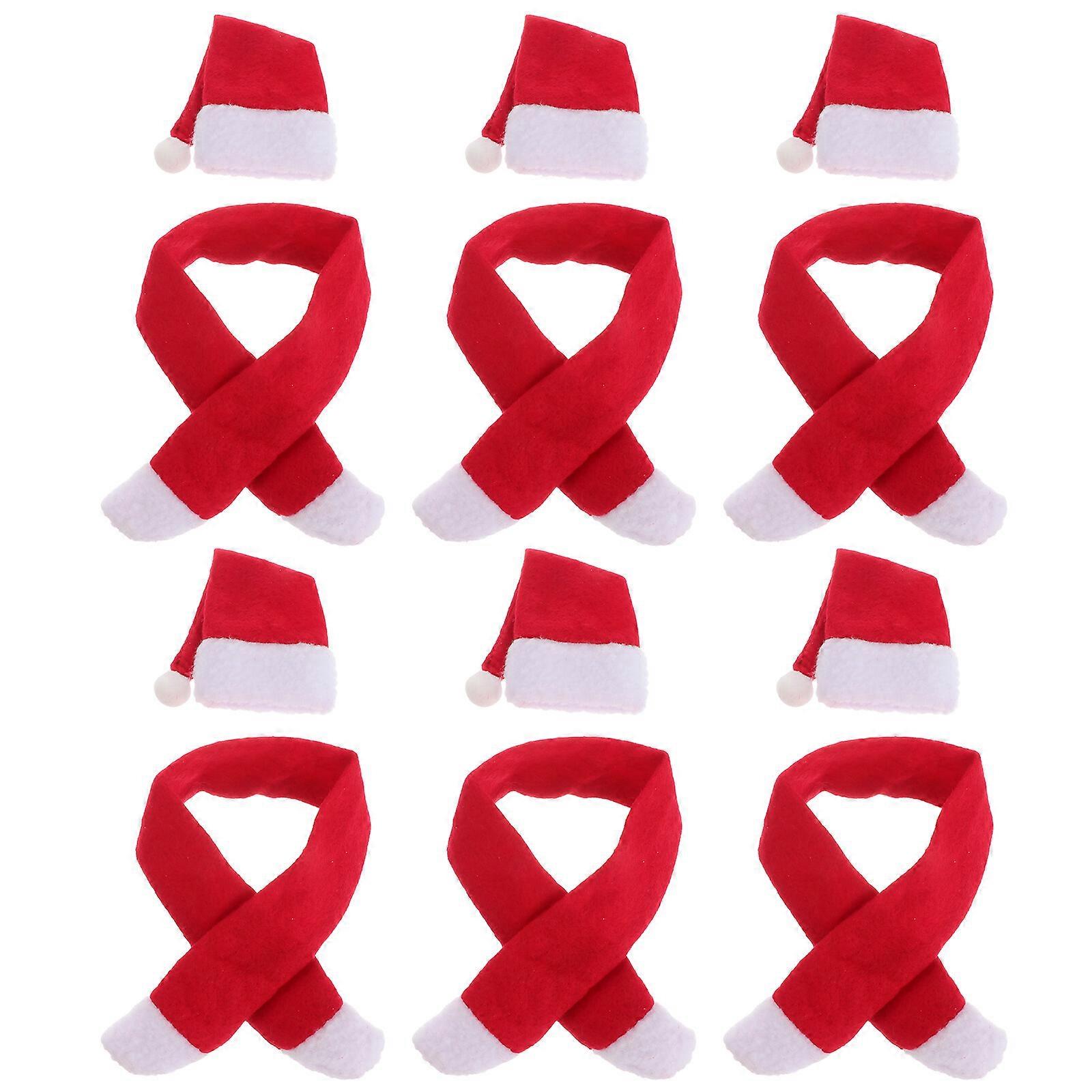 6 Set Christmas Hat and Scarf Wine Bottle Cover Set Lovely Bottles Red Covers Xmas Eve Dinner Table Decor for Home Hotel Party (Hat Scarf )