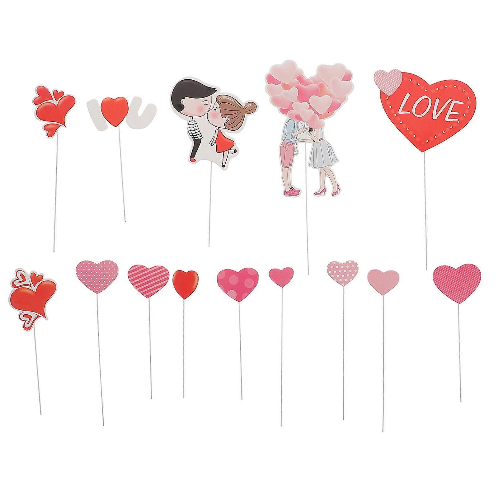 6 Sets Valentine's Day Cake Pick Decors Heart Couple Love Cake Decors Paper Cake Inserts