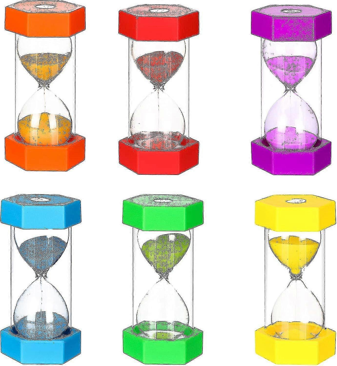 Set Of 6 Timer Hourglass Anti-fall Colourful Hourglass Set Hourglass Egg Timer 1 3 5 10 15 30 Minutes Timer For Children School, Children Teeth Brushi