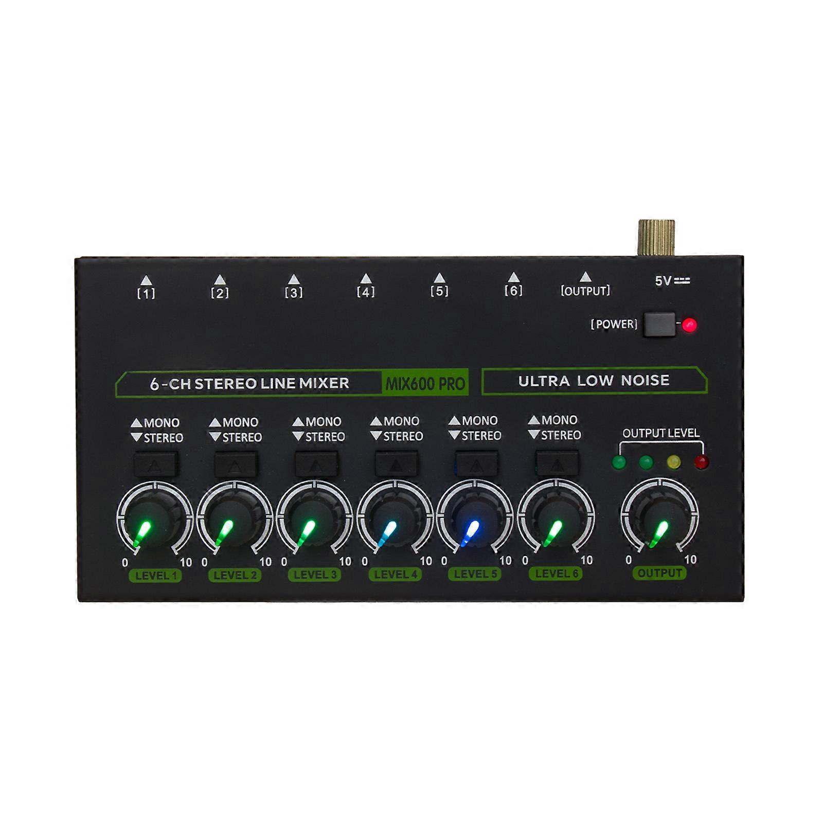 6-Channel Audio Mixer Mini Audio Mixer Stereo Mono Switching 6.35mm TRS/TS Input Metal Shell Type-C Audio Processor Ultralow-noise Mixer Independent