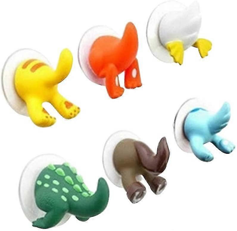 Set Of 6 Bathroom Suction Cup Hooks Red, Yellow, Green, Blue, White, Coffee