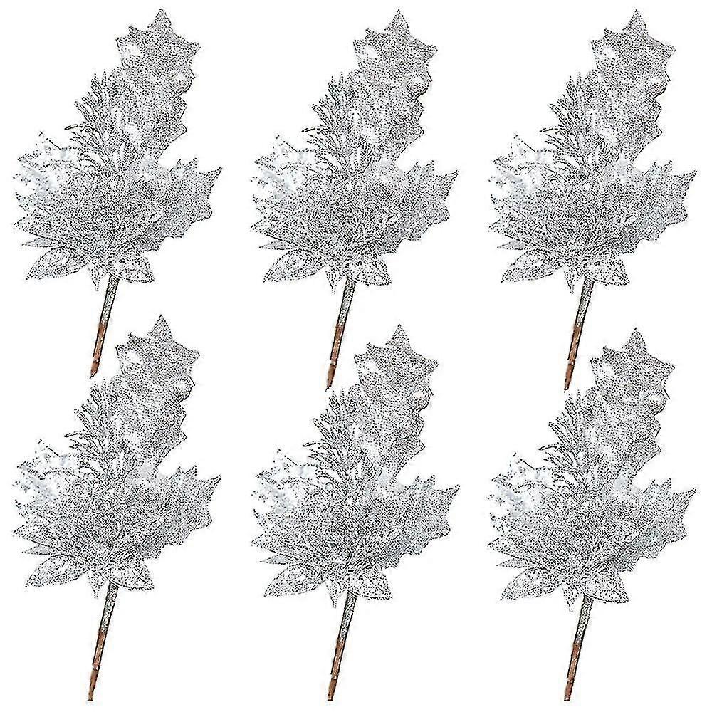 6 Pack Glitter Christmas Picks Sprays With Artficial Flower Leave Fruit For Xmas Decor Home Decor Silver