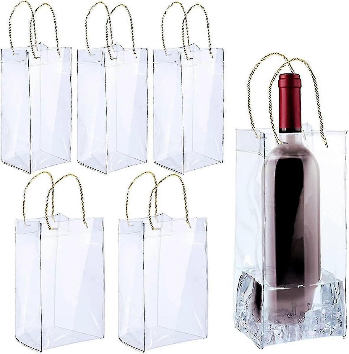 6 Pack Clear Pvc Champagne Champagne Ice Bags, Cooler Bags With Handles, Leak-proof Bottles Cooler Ice Bags For Party, Outdoor, Champagne, Cold Beer